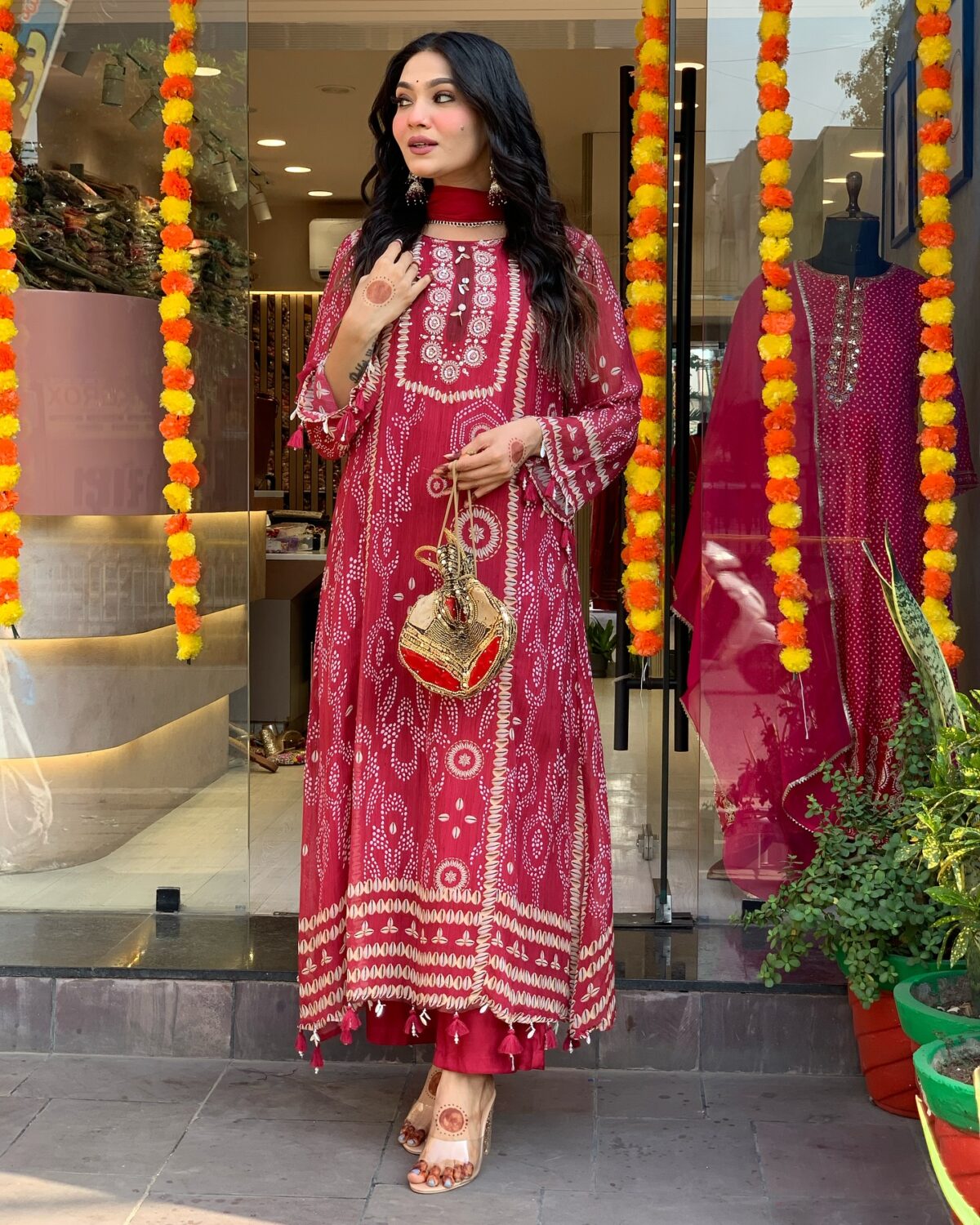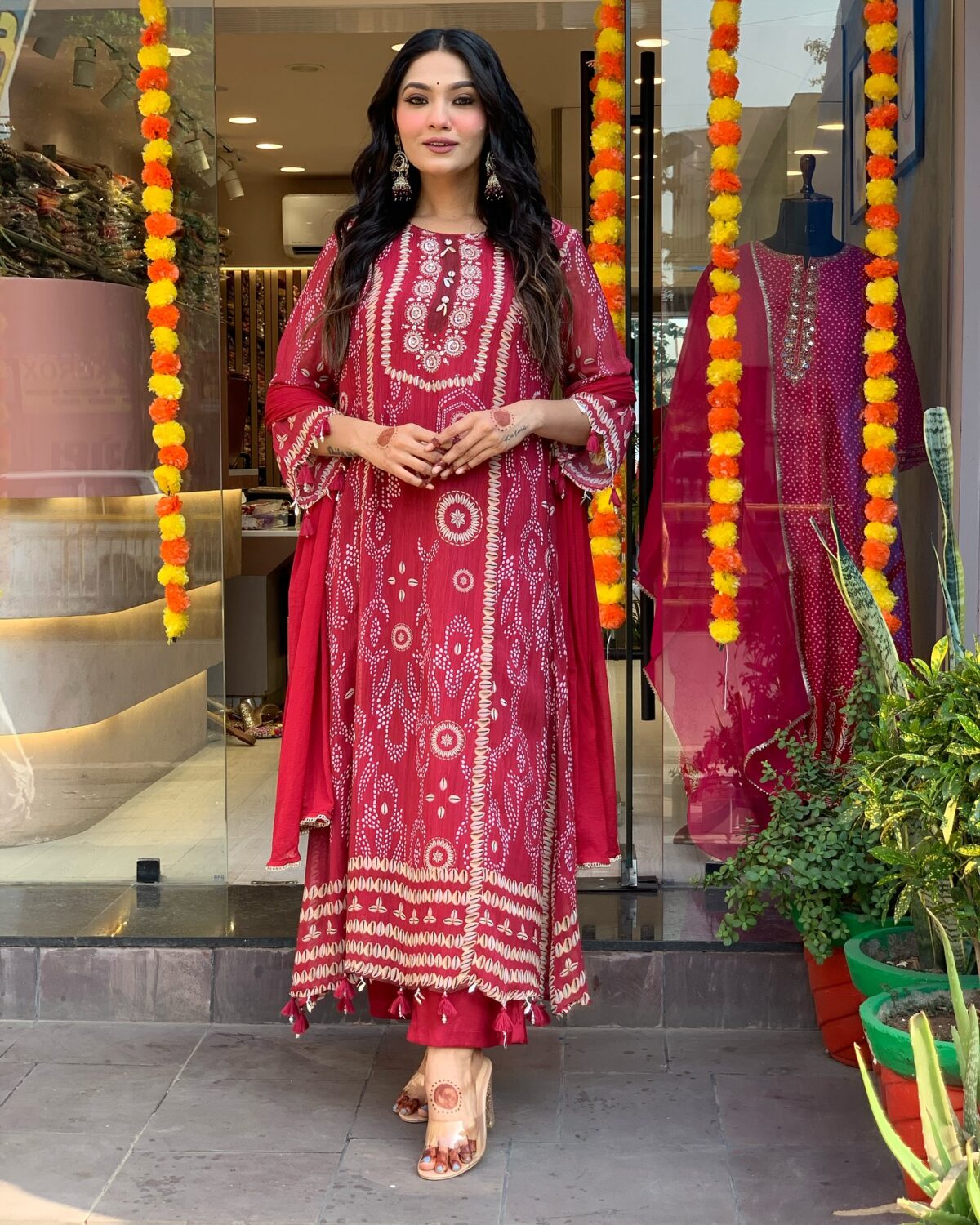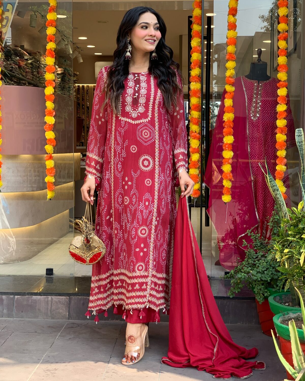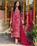 Paired with complementary bottoms that ensure comfort and versatility, the Siren Red Suit also includes a flowing dupatta, completing the ensemble with grace and fluidity. Perfect for festive occasions, weddings, or any special event, this suit is designed to leave a lasting impression, embodying both allure and timeless beauty.
