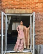 Bohot hi royal lagta hai yeh sharara set. Dupatta ka lace border aur embroidery kaafi classy hai. Wife ne pehna aur sabki nazar uspar hi thi!