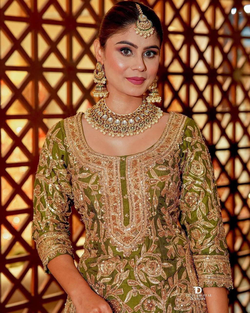The Regal Sitara Luxe Gold Set is absolutely stunning! The embroidery is so detailed, and the fabric feels premium. Perfect for festive occasions.