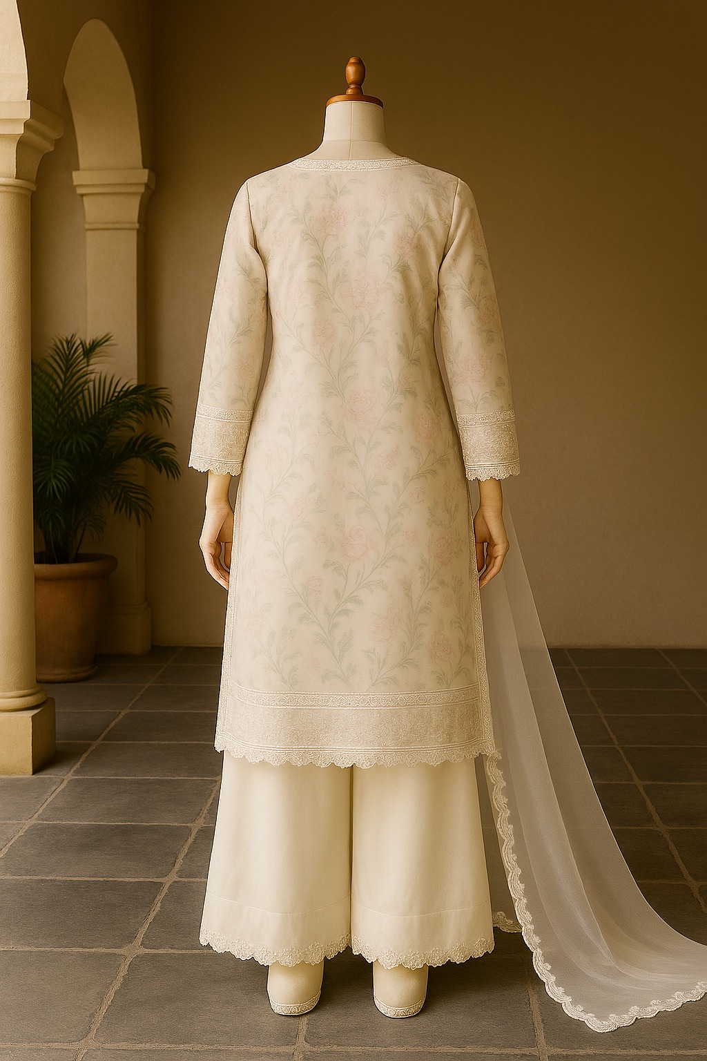 - Dupatta: Pure Heavy Faux Georgette with Embroidery Sequence Work and Four Side Lace Border