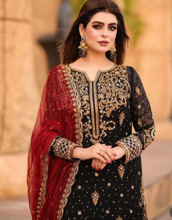 - Dupatta: Georgette with delicate sequins embroidery work, finished with an elegant lace border.