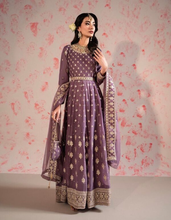 Regal Lavender Silk Embroidered Wedding Anarkali