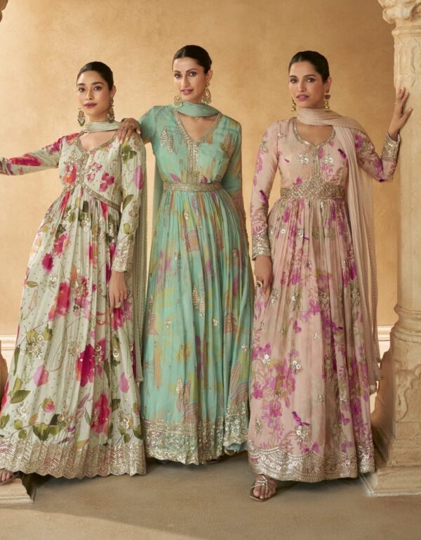 - Fabric: Premium Chinon Silk for a luxurious drape.