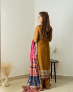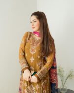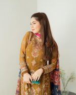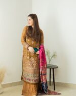 The Sunehri Afsana Sharara Set is a stunning blend of traditional charm and contemporary elegance. Crafted in rich golden hues, this outfit features intricate embroidery, a vibrant dupatta, and a graceful sharara, making it perfect for festive occasions and celebrations. Step into timeless beauty with this exquisite ensemble.