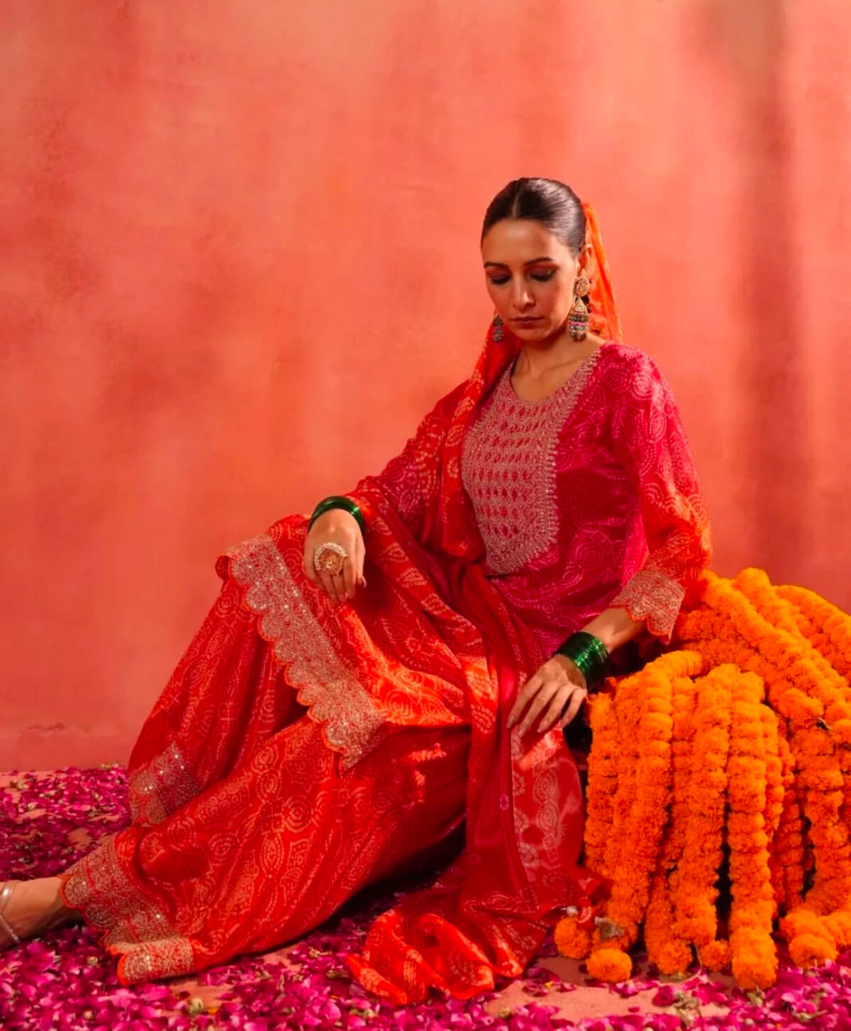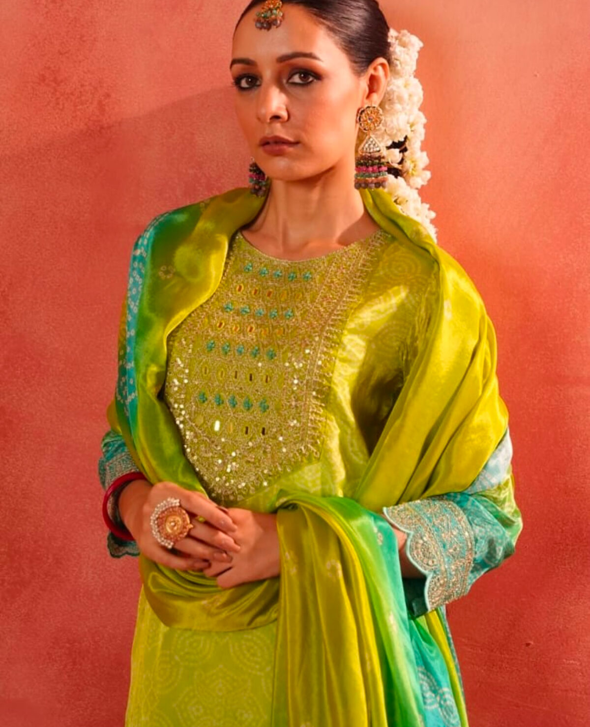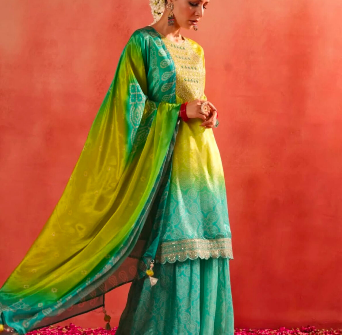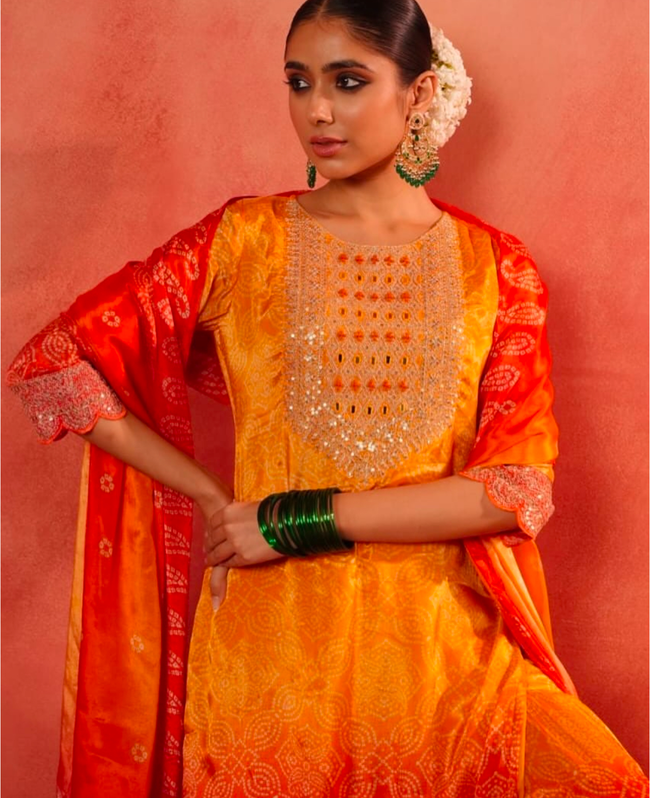 5 reviews for Regal Bandhani Mirror Kurta Set with Festive Dupatta
