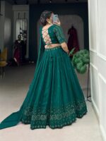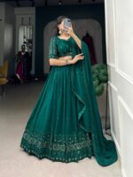 The lehenga is absolutely stunning! The green color is vibrant, and the georgette fabric feels so lightweight and comfortable.