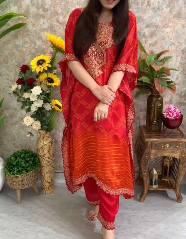 Absolutely stunning kaftan set! The Chinon silk feels so luxurious, and the embroidery is just perfect for festive wear. Loved the tassel detailing too!