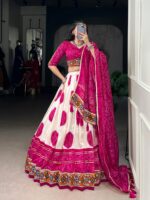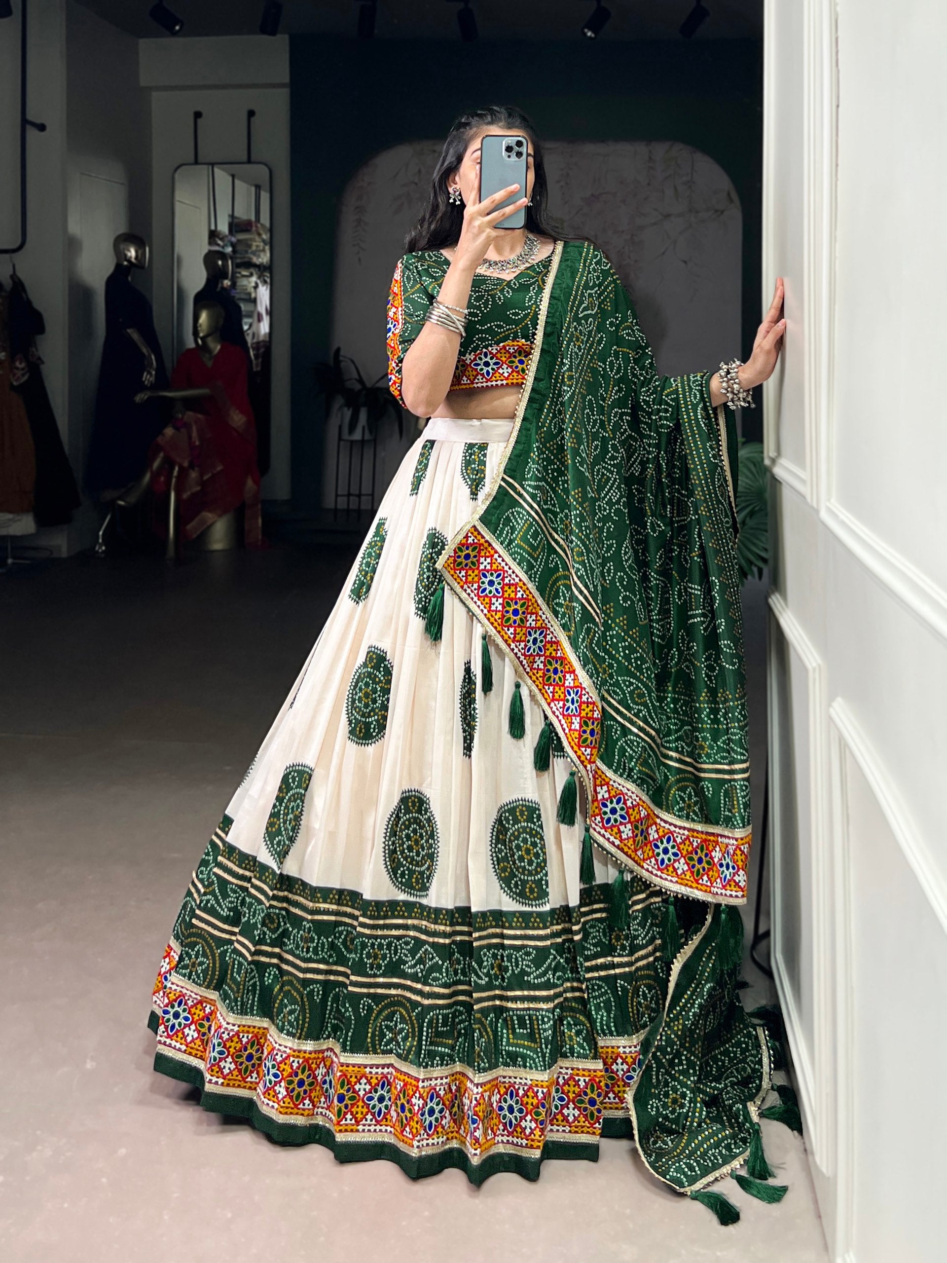 Lehenga Work : Bandhej Print And Gamthi Work With Lace Touch Up