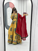 5 reviews for Yellow Colored Kalamkari Gown Dupatta Set