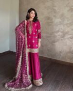 The Regal Magenta Luxe Palazzo Ensemble is absolutely stunning! The zari and sequins work is so intricate, and the fabric feels premium. Perfect for festive occasions!
