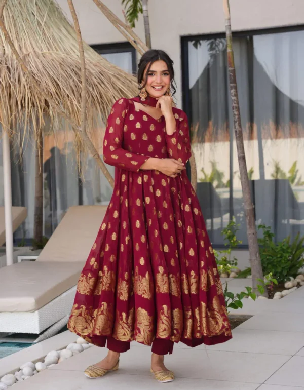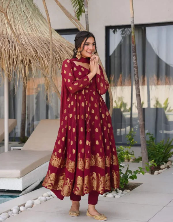 Regal Maroon Banarasi Anarkali Set