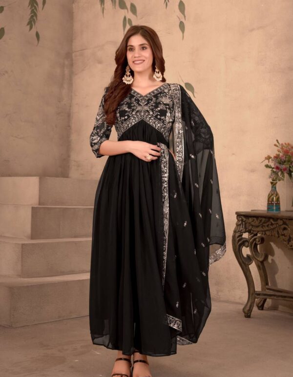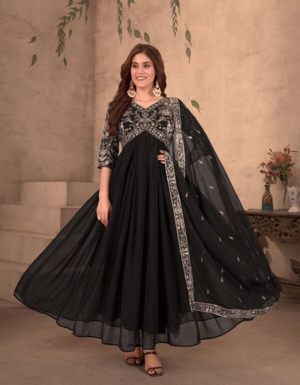 Black Color Faux Georgette Embroidery Gown
