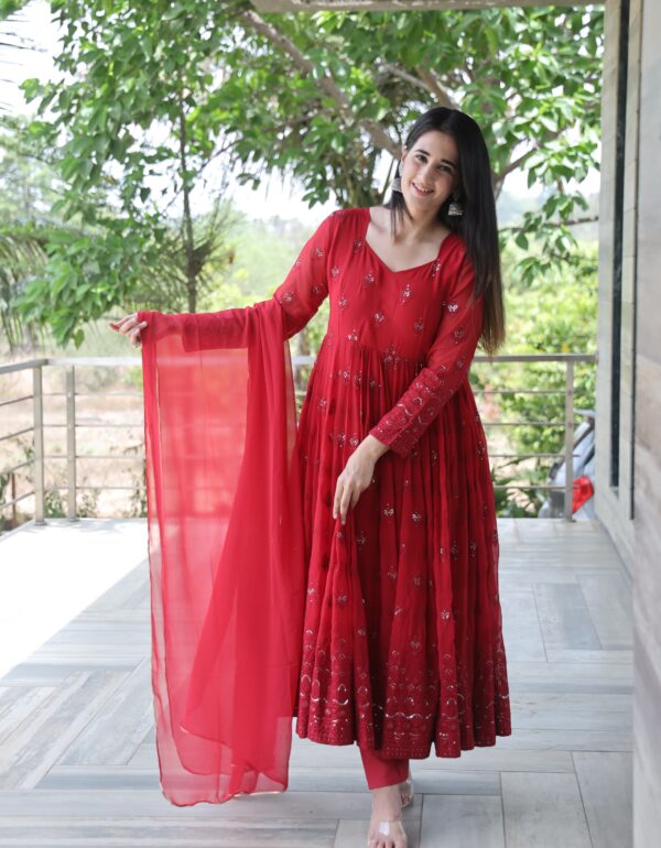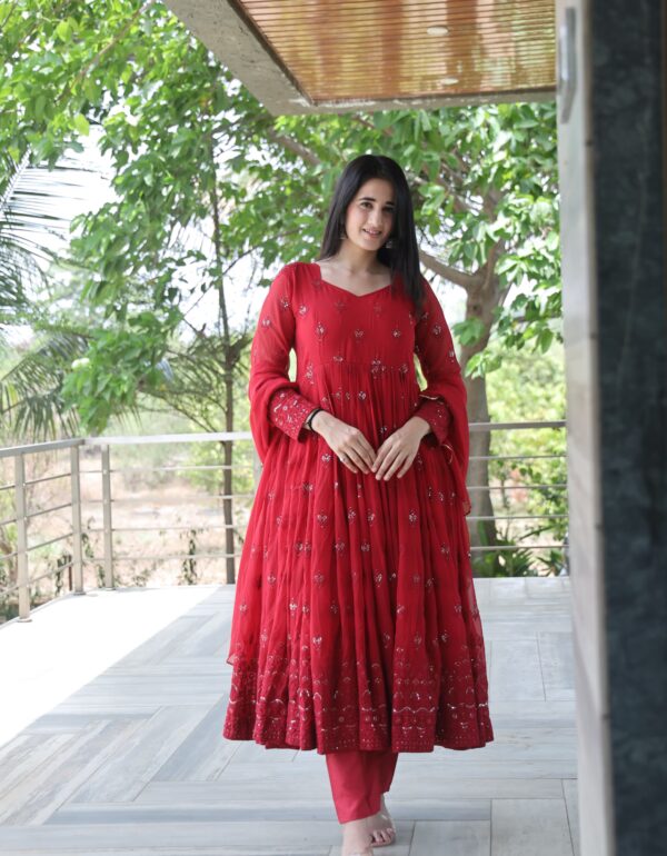 Radhika Maroon Coloured Anarkali Suit Set