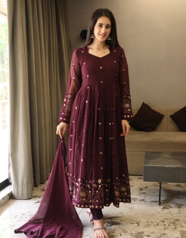 SONIA WINE COLOURED ANARKALI SUIT SET
