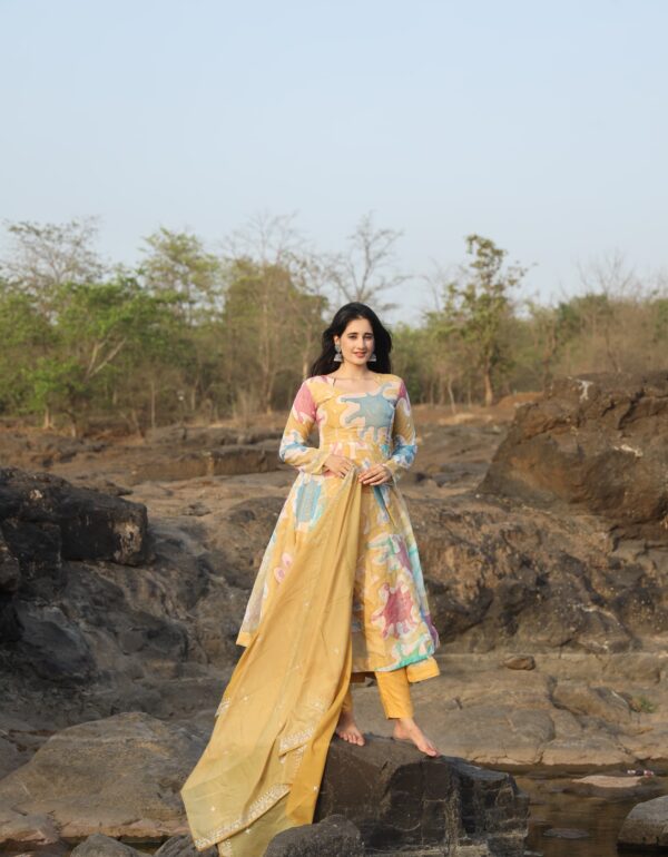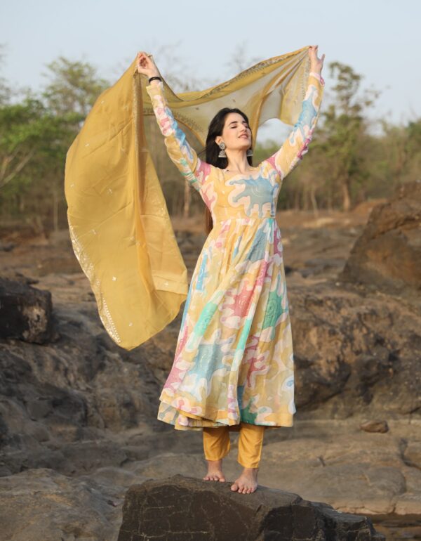 Nancy Multi Coloured Hand Print Anarkali Suit Set