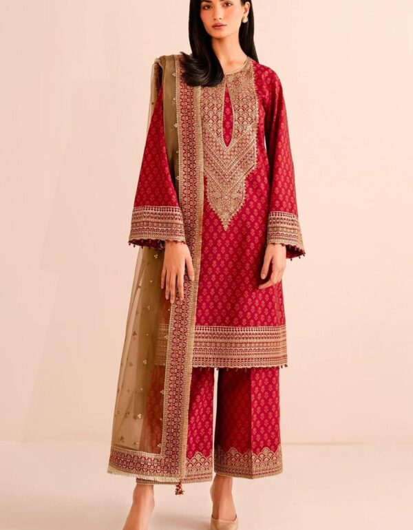 Crimson Embroidered Jacquard Kurta Set