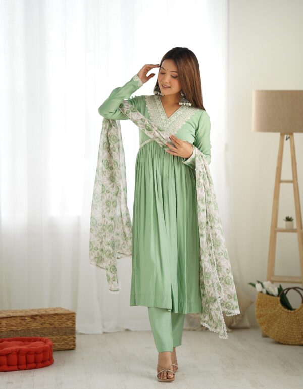 Model Height: 5.5 Model Is Wearing : M Size Gown :Fabric –Pure Blooming Vichitra Silk Length :- 50Sleeves :-sleeves :- Full Sleeves Flair
