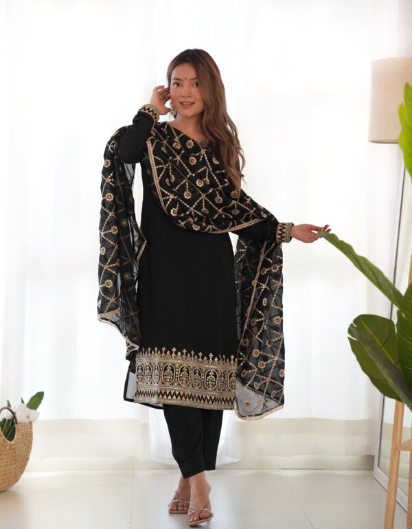 Model Height: 5.5 Model Is Wearing: M Size Suit :Fabric –: Pure Cinon Silk Work – Heavy Embroidery Sequence Work With Full-Sleeve