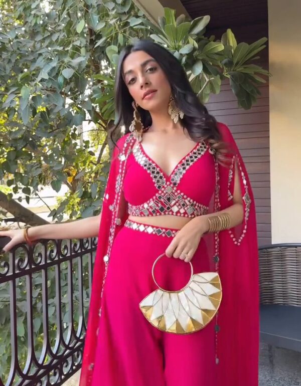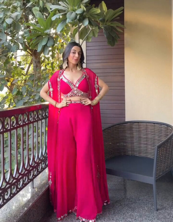 Steel Rani Pink Georgette Mirror Work Crop Top And Sharara