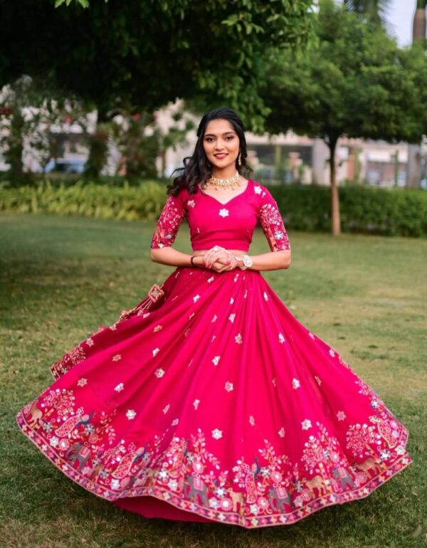 Lehenga Details : Lehenga (Stitched)Lehenga Fabric : Vichitra Silk Lehenga work : Sequins and Thread Embroidery Work With Lace Border