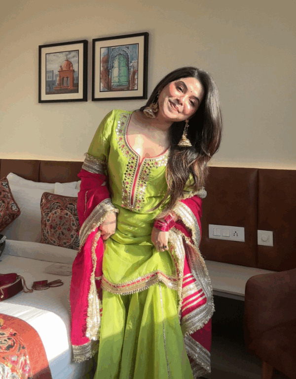 Model Height: 5.5 Model Is Wearing : M Size Top :Fabric – Pure OrganzaWork – EMBROIDERY SEQUENCES WORK WITH PERAL &