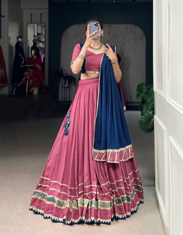 Model Height: 5.5 Model Is Wearing : M Size  Lehenga (Stitched) :Lehenga Fabric : Vichitra Silk Lehenga Work : Plain With Sequins