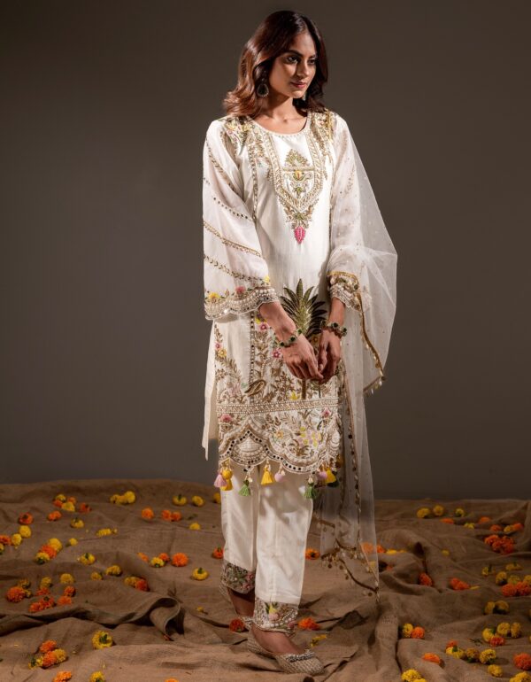 Ivory Garden Embroidered Kurti with Tassel Detailing