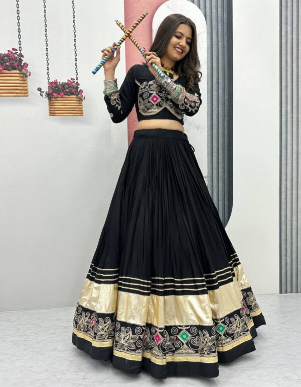 The Festival Muse Jewel Tones with Hand Embroidered Borders Navratri Lehenga Choli
