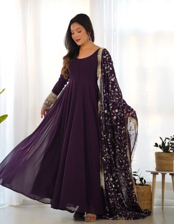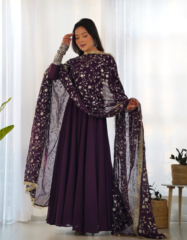 Wine Color Soft Georgette With Embroidery Work Dupatta Anarkali Gown