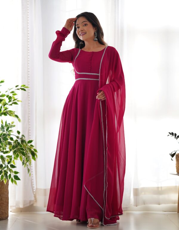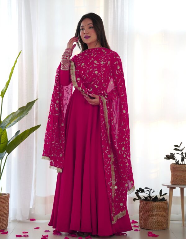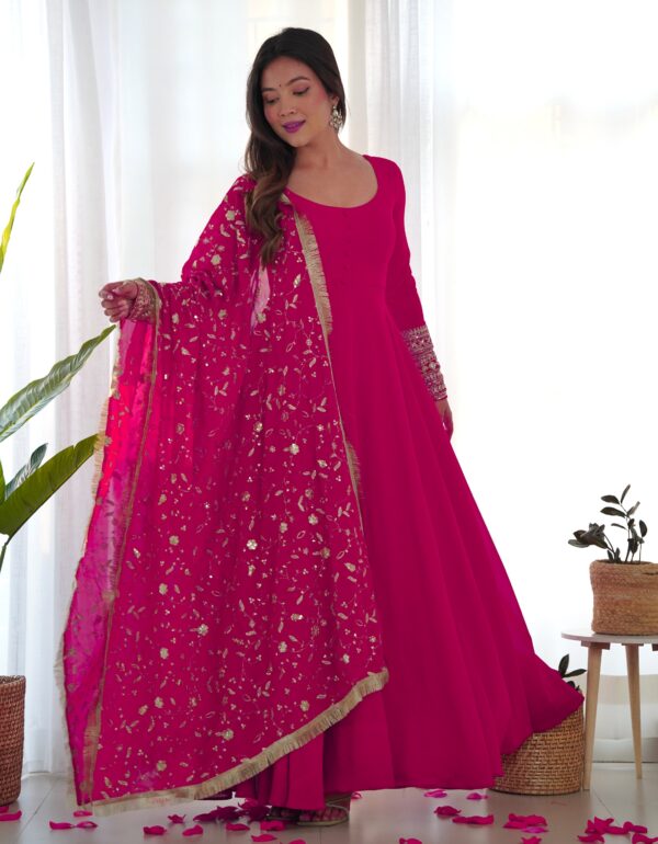 Rani Pink Color Soft Georgette With Embroidery Work Dupatta Anarkali Gown