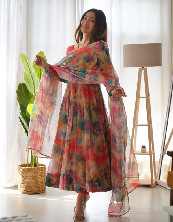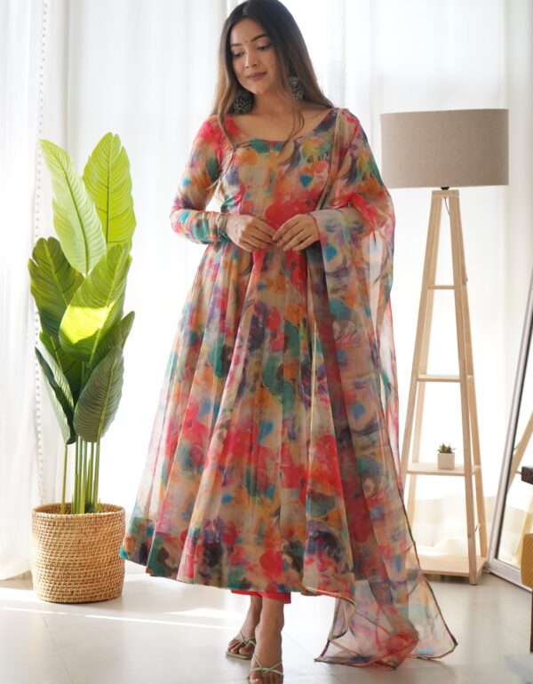 PURE SOFT ORGANZA SILK ANARKALI KALI CUT GOWN