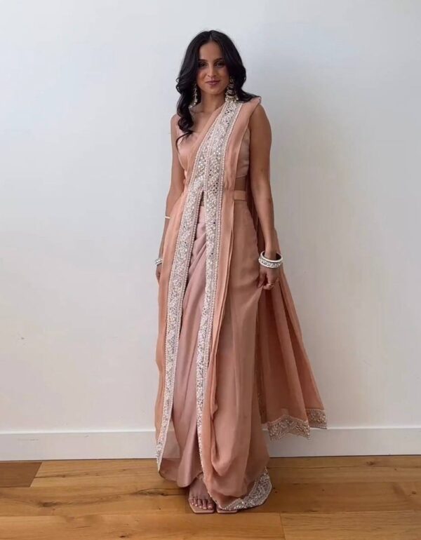 Model Height: 5.5 Model Is Wearing : S Size Gown :Fabric – Organza Silk Work – Design WorkFlair : 4.50mtrHeight –