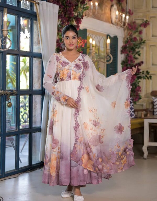 Vanshika Lavender Bloom Elegance Floral Printed Anarkali Gown