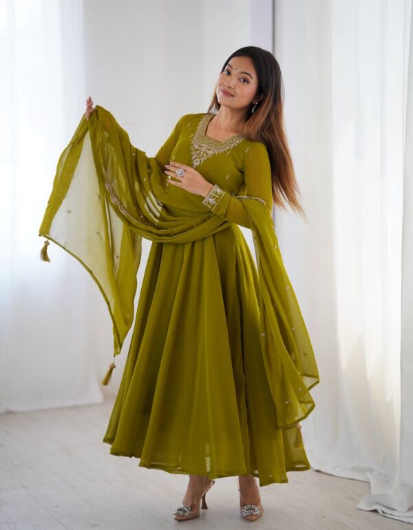 Verdant Grace: Embroidered Anarkali Gown with Dupatta