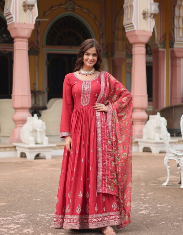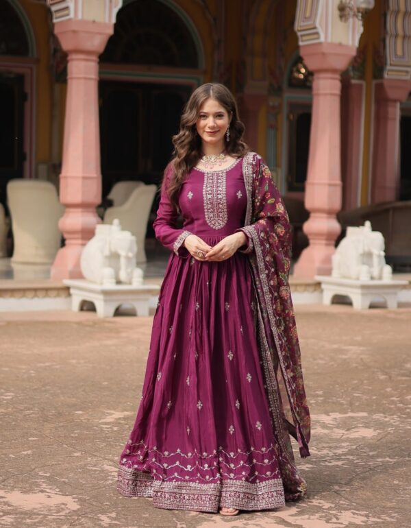 Shine With Stunning Outfit Embroidered Work Gown