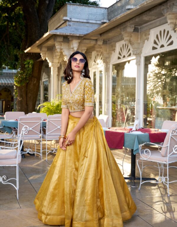 Top • Fabric: Rich blend with golden thread embroidery • Inner: Comfortable micro cotton • Work: Heavy sequin & zari detailing on sleeves and waist • Stitching: Fully stitched, ready to wear Lehenga • Fabric: Premium maroon silk • Flair: Approx. 3.8–4 meters • Inner: Soft cotton lining • Stitching: Semi-stitched (adjustable) Dupatta • Fabric: Organza blend with dual-tone finish • Work: Silk lace border • Length: 2.25 meters approx.